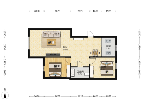 房屋戶型: 2 室1廳 1 廚1衛(wèi)