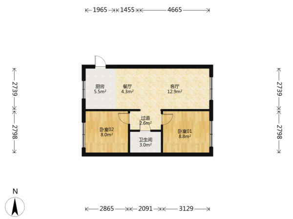 房屋戶型: 2 室2廳 1 廚1衛(wèi)