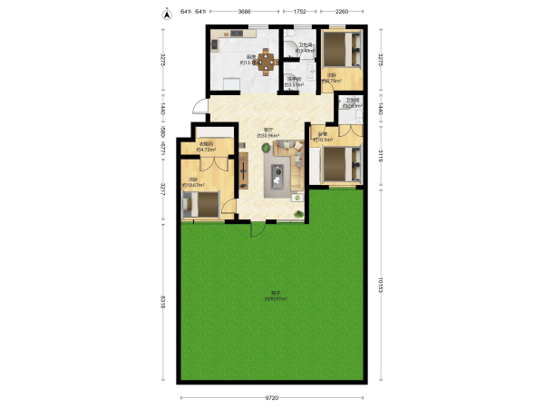 房屋戶型: 3 室2廳 1 廚1衛(wèi)