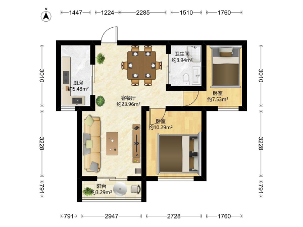 房屋戶型: 2 室2廳 1 廚1衛(wèi)